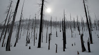After a few runs Chris decided it was time to give Dan and I some practice with our new avy beacons and probes.  It took us a little while to traverse across the ridge back towards the car and I was amazed at how thin the snow cover was under the trees that hadn’t burned in the fire.  The record rainfalls in January while we were in Disney apparently had apparently struck at this elevation as well because there certainly wasn’t much on the ground and we found ourselves stepping over more than a few logs to get back to the parking lot.